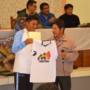 En un emotivo acto realizado en la Dirección Distrital de Educación de Torotoro, las instituciones vivas del municipio se reunieron para rendir un merecido reconocimiento a Diego Yafer Quespia Aguilar, destacado atleta del equipo Tunari Trail, quien logró una brillante participación en el Campeonato Sudamericano de Trail y Montaña Samaipata 2026, ubicándose en el top 10 de la exigente categoría Long Trail 80K y consagrándose como el primer boliviano en esta distancia.